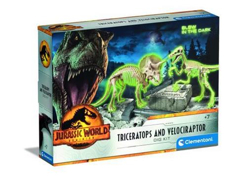 - Bij Dreamland kun je Clementoni Jurassic World Triceratop and Velociraptor Dig Kit kopen voor de prijs van € 19,99. Dit is vandaag de goedkoopste webshop.