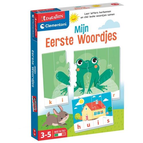 Met het puzzelspel Clementoni Mijn Eerste Woordjes leren kinderen van 3 tot 5 jaar oud niet alleen letters herkennen en spellen, maar ook hun eerste woordjes vormen. De 16 kleurrijke puzzels met leuke onderwerpen stimuleren kinderen om de afbeeldingen in elkaar te zetten en ontdekken uit welke letters het afgebeelde woord bestaat. De zelfcorrigerende stukken zorgen ervoor dat kinderen zelfstandig kunnen spelen en hun keuzes kunnen controleren. Dit spel is geschikt om alleen te spelen of samen met vrienden en familie dankzij het groepsspel. Het is een abstract spel met Nederlandstalige instructies en is van het merk Clementoni met EAN 8005125561742.