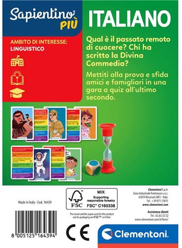 - Bij Bol.com kun je Clementoni Sapientino Più 16439 bordspel Kaartspel Quiz kopen voor de prijs van € 23,77. Dit is vandaag de goedkoopste webshop.