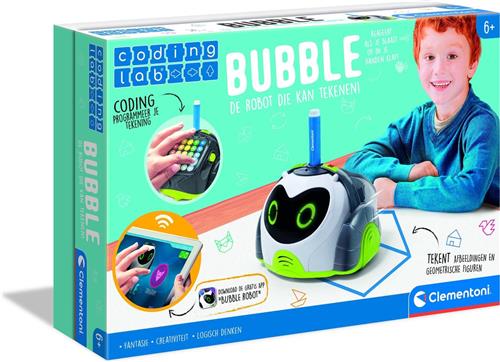Bubble is een innovatieve en interactieve robot van Clementoni die kinderen op een speelse manier laat kennismaken met tekenen en coderen. Door eenvoudigweg op de toetsen op het toetsenbord te drukken, kunnen kinderen unieke tekeningen maken die Bubble vervolgens op papier zal tekenen. Met behulp van de kaarten in het spel kunnen kinderen de basisprincipes van programmeren leren, maar de mogelijkheden zijn eindeloos!