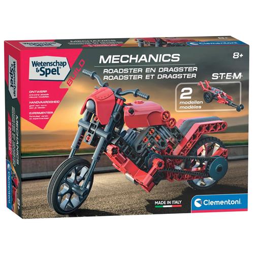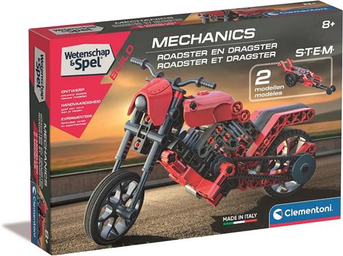 Met de Clementoni Wetenschap & Spel Motor Bouwen wetenschappelijke kit uit Italië beleef je urenlang plezier terwijl je een roadster-motor of een dragster monteert! Deze kit bevat meer dan 90 onderdelen waarmee je 2 verschillende modellen met transmissiemechanismen kunt bouwen. De geïllustreerde handleiding helpt je stap voor stap bij het monteren van de roadster-motor, waardoor het een leerzame ervaring wordt. Ontdek de werking van voertuigen door speciale onderdelen zoals de transmissiemodule, tandwielen en zuigers te observeren.