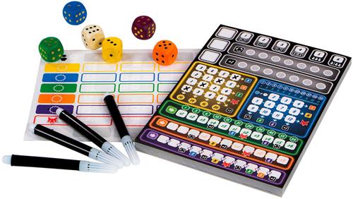 | Verpakkingsinhoud | Inhoud: 1 scoreblok 6 dobbelstenen 4 viltstiften De spelregels |