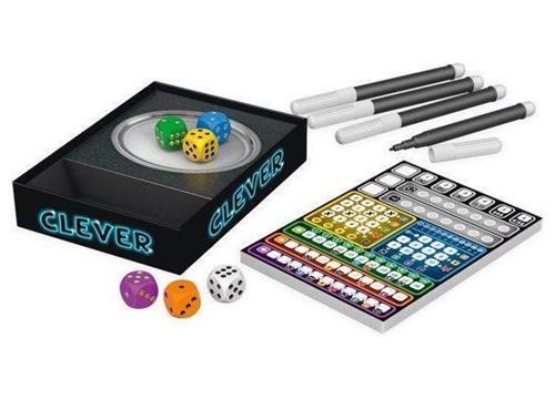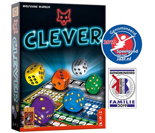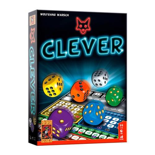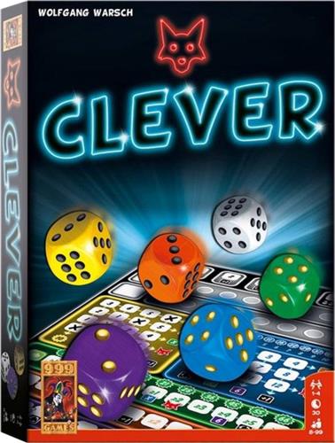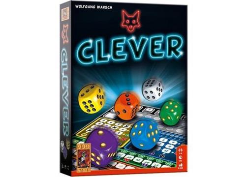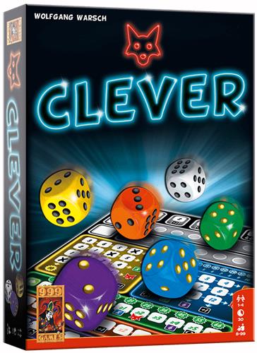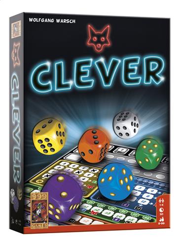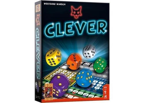 Clever is een tactisch dobbelspel voor het hele gezin waarbij je een van je geworpen dobbelstenen in de bijbehorende categorie moet invullen. Elke categorie levert op een andere manier punten op. Kies slim en let goed op de overgebleven dobbelstenen, want je moet elke dobbelsteen met een lager resultaat op het zilveren dienblad aan de andere spelers serveren. Hierdoor kunnen zij ook belangrijke punten scoren, waardoor het spel tot het einde razend spannend blijft!