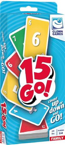 Van de makers van Clown Games RaRa Wat Ben Ik? is er nu een nieuw familiespel 15 Go!. Het doel van dit kaartspel is om zo snel mogelijk al je kaarten weg te spelen, door de cijfers aansluitend weg te leggen. Je maakt rijtjes op tafel, maar je mag de kaarten ook op het stapeltje van je medespeler leggen! Een tactisch spel, waarbij je snel moet handelen en tellen. Met twee speelmogelijkheden: het basisspel èn een versie voor gevorderden. Wie is als eerste zijn kaarten kwijt en wint het spel? Inhoud van de doos: 120 kaarten en duidelijke spelregels. Voor 2 tot 8 spelers, vanaf 7 jaar.