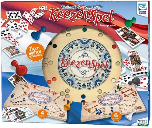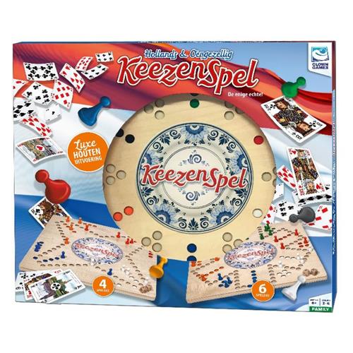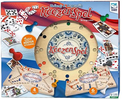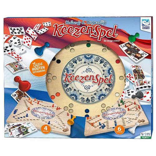 Keezen is een combinatie van Pesten en Mens Erger Je Niet. Een echt Hollands en oergezellig bordspel van Clown Games, volledig in houten uitvoering! Tijdens het spel bepaalt de spelkaart die je opgooit wat de pion mag doen. Zorg dat je alle vier je pionnen als eerste op het thuishonk hebt en probeer met pestkaarten te voorkomen dat je tegenspelers hetzelfde doel bereiken!