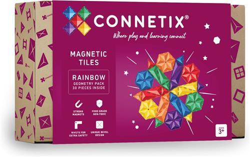 - Bij Bol.com kun je CONNETIX - Magnetisch Tegels - Regenboog Geometrie Pakket - 30 Stuks kopen voor de prijs van € 49,00. Dit is vandaag de goedkoopste webshop.