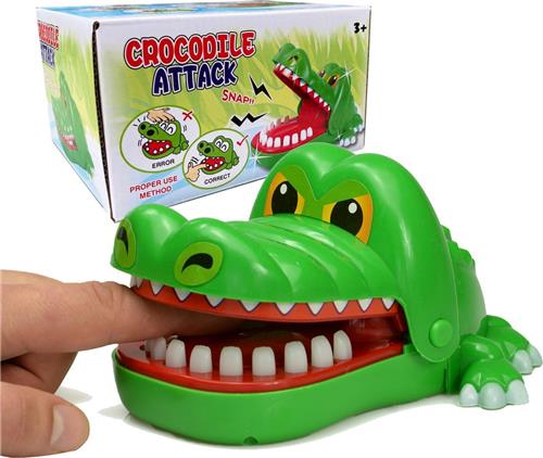 De Bijtende Krokodil is een spannend actiespel waar geluk en behendigheid samenkomen. Draai om de beurt aan de krokodil en druk voorzichtig op een tand. Durf jij het risico te nemen en de verkeerde tand in te drukken? Als de krokodil bijt, ben jij af! Dit gezelschapsspel zorgt voor uren speelplezier en is geschikt voor alle leeftijden.