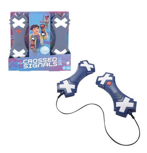 Bij het elektronische spel Crossed Signals zwaaien de spelers omhoog, omlaag of schudden ze met de sticks zoals aangegeven door de lampjes en de spraakopdrachten! Je moet snel reageren om te winnen! De speler met de meeste punten is de winnaar! Het spel CROSSED SIGNALS gebruikt licht en spraakopdrachten om je in beweging te krijgen en je snelheid en nauwkeurigheid te testen.