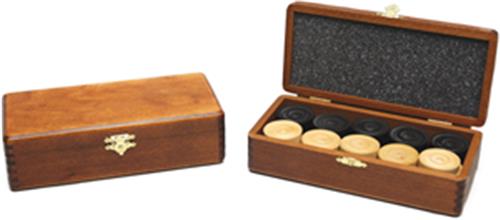Damstenen blank/zwart in bruin houten klap-kist HOT Games