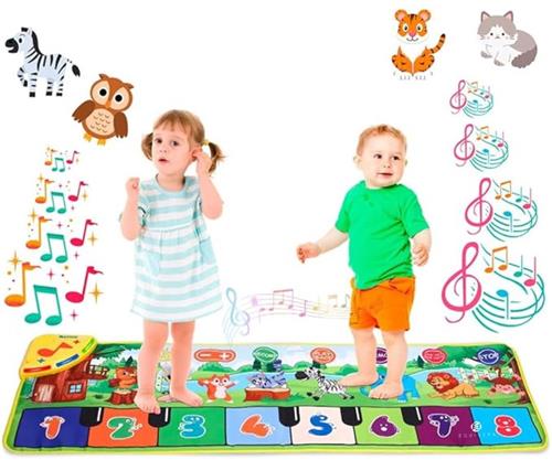 Ontdek de Dansmat - Muziek Mat, de perfecte muziekspeelmat voor jouw baby of peuter! Deze Montessori-geïnspireerde mat is ideaal voor kinderen van 6 maanden tot 5 jaar en combineert plezier met leren. Met maar liefst 8 verschillende instrumentgeluiden, waaronder piano, fluit en gitaar, kan jouw kleintje zich urenlang vermaken terwijl het muzikale vaardigheden ontwikkelt.