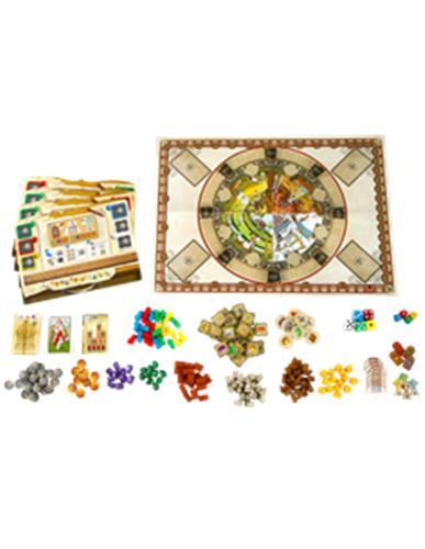 | Verpakkingsinhoud | Inhoud: 4 scorestenen 20 hout 20 baksteen 20 steen 15 goud 10 groene juwelen 10 paarse juwelen 1 markttableau 4 werkplaatstableaus 8 middelentegels 28 werkplaatstegels 16 decoraties 40 munten 66 kaarten 5 dobbelstenen de spelregels |