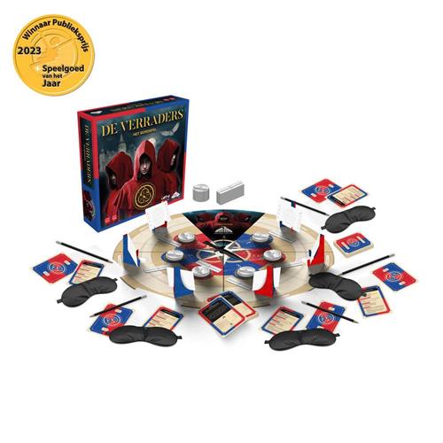 Ben jij de verrader of weet jij de verrader te ontmaskeren? Bestel nu het officiële 'De Verraders' bordspel, gebaseerd op het succesvolle tv-programma, en speel samen met vrienden en/of familie dit spannende en verraderlijke spel thuis! Zijn jouw vrienden nog wel te vertrouwen als het om zilver gaat? En hoe goed kan jij zelf eigenlijk liegen als het moet? Speel verschillende missies met elkaar om zilver te verdienen, maar houd elkaar in de gaten, want er is een verrader met geheime opdrachten in jullie midden! Bespreek tijdens de Ronde Tafel wie er opvallend gedrag vertoont en stem op wie jij denkt dat De Verrader is. Maar pas op, kom je te dicht in de buurt van De Verrader en heeft De Verrader de geheime missie gehaald, dan ben jij je leven in de Nacht niet zeker… De Verraders bordspel, het spel dat je samen speelt, terwijl je eigenlijk niemand kunt vertrouwen. Wie is De Verrader en wie zijn De Getrouwen? Kom erachter in de finale en ga er vandoor met al het zilver!
