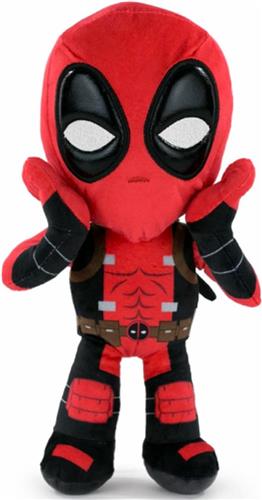 De Deadpool Marvel pluche knuffel van 35 cm is een aanwinst voor elke fan van deze stoere anti-held. Met de bekende "Surprised Hands" houding en twee zwaarden op zijn rug, brengt deze knuffelpop het karakter van Deadpool tot leven.