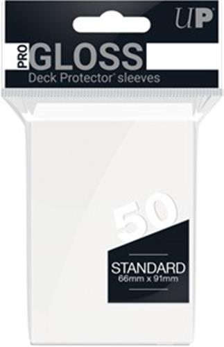 Basic, witte sleeves om je kaarten in te bewaren. Deze Sleeves zijn van hoge kwaliteit en echt onmisbaar voor iedere card game speler. Sleeves voor standaard kaarten. Afmeting: 66mm X 91mm. 1 set bevat 50 sleeves. Deck Protector Wit Ultra Pro 50 stuks. Deze sleeves zijn onder andere geschikt voor Magic: the Gathering en Pokemon kaarten.