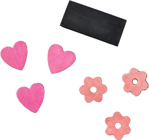 De decoratie set wordt geleverd met een handig krijtbordje, waarop kinderen hun eigen tekeningen en boodschappen kunnen achterlaten. De 3 hartjes en 3 bloemen zorgen voor een vrolijke en gezellige sfeer in het speelhuisje, waardoor kinderen nog meer plezier beleven aan hun speeltijd. Een must-have accessoire voor jonge creatievelingen!