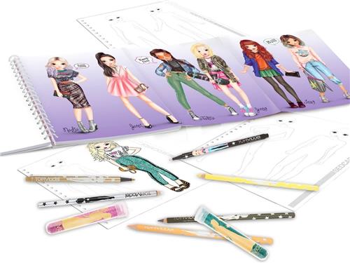 In dit TOPModel kleurboek vind je vele pagina's met silhouetten in verschillende houdingen waarop je kleding kunt ontwerpen in elke stijl. In het boek vind je ook volop voorbeelden, tips & trucjes om de vetste ontwerpen te maken!