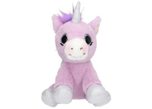 De Ylvi & the Minimoomis knuffel eenhoorn van Depesche is een betoverende metgezel voor kinderen van alle leeftijden. Deze magische paarse eenhoorn heeft een superzachte vacht en schitterende, warrige manen in prachtige regenboogkleuren. Het schattige borduursel op de rug en de lichtblauwe glitterogen maken deze knuffel echt uniek, terwijl de zilverachtige hoorn en hoeven een extra vleugje magie toevoegen.