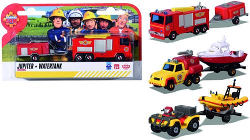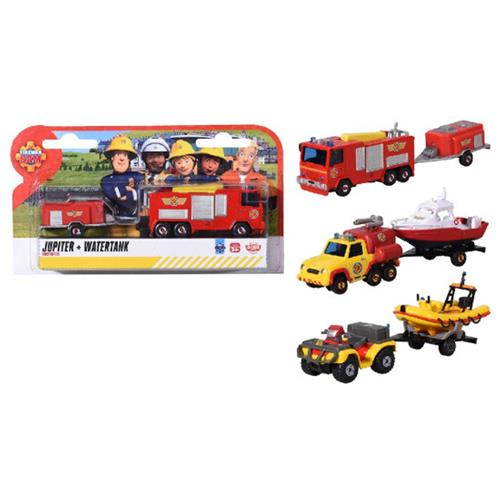 De Dickie Toys Brandweerman Sam speelset is onmisbaar voor kinderen vanaf 3 jaar die dol zijn op Brandweerman Sam en zijn avonturen in Pontypandy. De set bevat verschillende Brandweerman Sam-voertuigen met aanhangwagen, waaronder Jupiter met watertank, Venus 2.0 met Titan en Mercurius met Neptunus. Deze die-cast modellen op schaal 1:64 bieden urenlang speelplezier en stimuleren de fantasie van kinderen in de wereld van Brandweerman Sam. De voertuigen rollen freewheelend voort, wat zorgt voor nog meer interactief plezier.