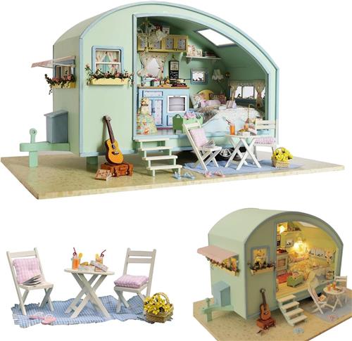 Stap binnen in een wereld vol fantasie met ons unieke DIY Poppenhuis Bouwpakket - de Caravan van Tijdreizen. Dit prachtige, handgemaakte miniatuur huisje is een perfect hobbyproject voor zowel volwassenen als kinderen vanaf 14 jaar. Met aandacht voor detail en hoogwaardige materialen creëer je een kunstwerk dat niet alleen een blikvanger is, maar ook zorgt voor urenlang knutselplezier. Van de prachtige houten meubels tot de sfeervolle LED-verlichting, alles is inbegrepen om jouw eigen droomhuis tot leven te brengen.