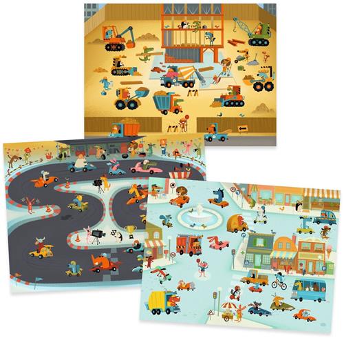 De set bevat verschillende achtergronden, waaronder een levendige stad, een spannende racebaan en een dynamische bouwplaats. Kinderen kunnen hun transferstickers precies op de juiste plek aanbrengen en zo hun eigen unieke scènes vormgeven. Met meer dan 100 stickers is de Djeco decalcomanie speelgoedset perfect voor urenlang creatief speelplezier.