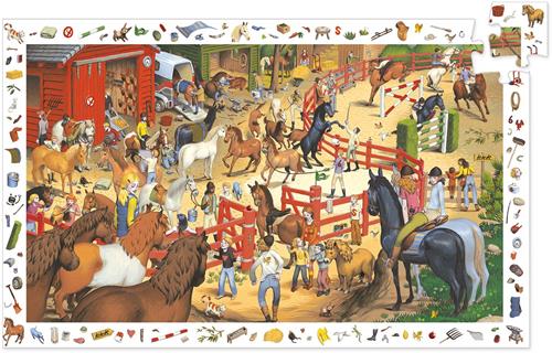 De Djeco Drukte op de manege puzzel is een leuke manier om je concentratie en puzzelvaardigheden te testen. Of je nu een paardenliefhebber bent of gewoon van puzzelen houdt, deze puzzel is een aanwinst voor elk speelmoment. Geniet van urenlang plezier en ontspanning met deze mooie legpuzzel!