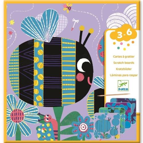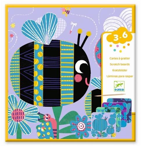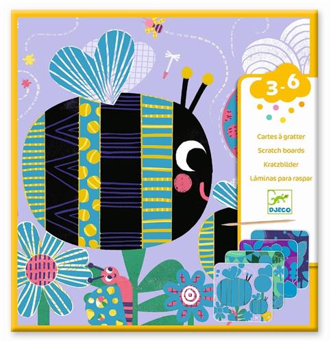 Ontdek de magische wereld van kleine diertjes met de DJECO Kraskaarten set. Kinderen tussen de 3 en 6 jaar oud kunnen met deze set urenlang plezier beleven. De set bestaat uit 4 voorbedrukte platen met schattige afbeeldingen van een rups, vlinder, bij en lieveheersbeestje. Door met de bijgeleverde kraspen over de platen te krassen, komen de prachtige motieven tevoorschijn.