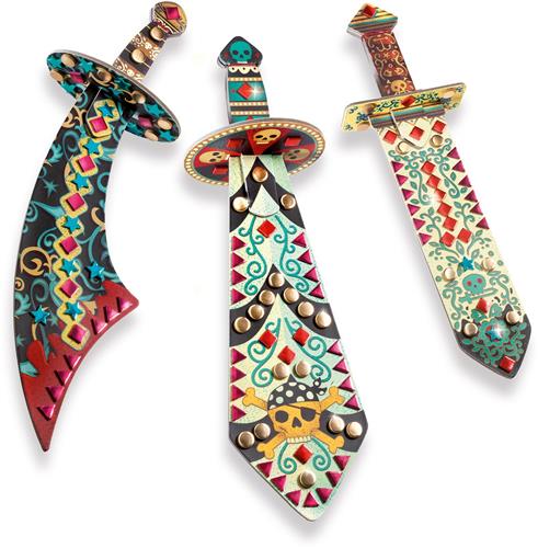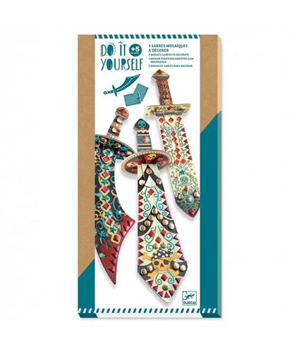 De set bevat drie stevige zwaarden van dik karton, elk met een lengte van 37 cm – perfect voor kleine piraten! Wat deze kit extra bijzonder maakt, zijn de vier vellen mozaïekstickers van foampapier met een metallic glans, die zorgen voor een schitterende afwerking. De stap-voor-stap instructies begeleiden de kinderen door het creatieve proces, waardoor ze zelfstandig aan de slag kunnen gaan of samen met vrienden.