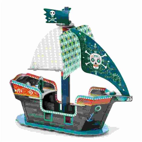 Een piratenschip om te bouwen in 3D! Met deze zeer mooie, stevige en gemakkelijk in elkaar te zetten kartonnen set kunnen kinderen hun eigen piratenavonturen beleven. De set bevat 23 kartonnen stukjes waarmee kinderen eindeloos kunnen spelen en hun verbeelding de vrije loop kunnen laten gaan. Het is een ideaal decor om piratenverhalen te verzinnen en biedt urenlang speelplezier.