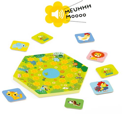 Een unieke eigenschap van dit spel is dat kinderen de geluiden kunnen mixen met behulp van een stip voordat het spel begint, wat zorgt voor extra speelplezier en interactie. De 3 LR54 batterijen die bij de set zijn inbegrepen, kunnen ook eenvoudig vervangen worden, zodat kinderen langdurig kunnen genieten van het spel. Daarnaast is dit spel gemaakt van FSC®-gecertificeerd papier en karton, wat bijdraagt aan een duurzamere speelervaring.