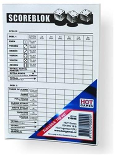 - Bij Spellenrijk kun je Dobbel Scoreblok 100 vel HOT Games kopen voor de prijs van € 1,95. Dit is vandaag de goedkoopste webshop.