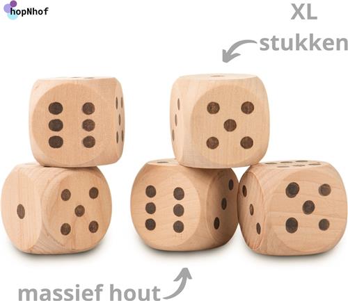 - Bij Bol.com kun je Dobbelspel Hout - XL dobbelstenen - 5 stuks kopen voor de prijs van € 16,99. Dit is vandaag de goedkoopste webshop.