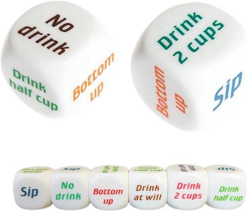 Met de drankspel dobbelstenen van DrankKoning kun je gemakkelijk en snel een drankspel starten. Rol de dobbelsteen en voer de opdracht uit.