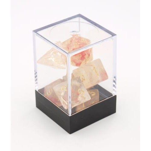 Controleer altijd voor aankoop de specificaties op de website van de webwinkel waar je Dobbelstenen Swirl Roze 7 set Brick aankoopt