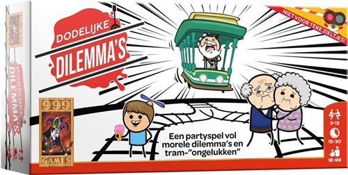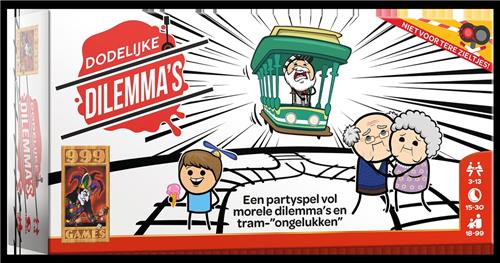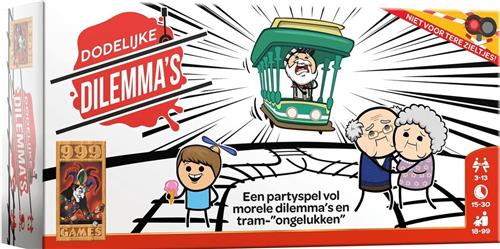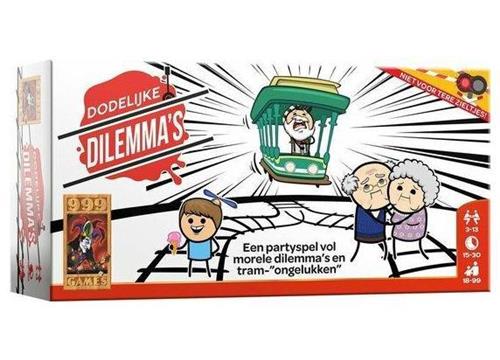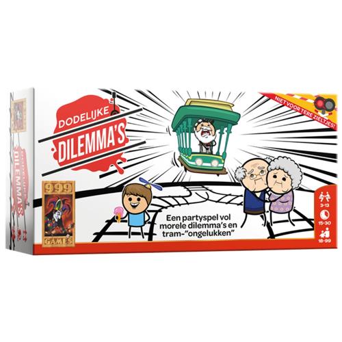 Dodelijke Dilemma's is een partyspel vol morele vraagstukken en tram-ongelukken. Eén speler is de conducteur en moet kiezen in welke richting hij zijn op hol geslagen, moordzuchtige tram heen stuurt. De andere spelers spelen hun kaarten en ruziën om de conducteur te overtuigen hun leven te sparen en iedereen op het andere spoor te veroordelen tot een gruwelijke terdoodveroordeling. Bij hun eigen spoor leggen ze goedaardige schepsels zoals een eenzaam katje dat net is geadopteerd. Aan het andere spoor leggen ze een duivels karakter, zoals Robot Hitler. Het is aan de conducteur om als rechter/beul een oordeel te vellen over dit Dodelijke Dilemma en te beslissen welk spoor wordt vermoord. Het team dat de tramrails heeft gelegd die gespaard is, wint de ronde!
