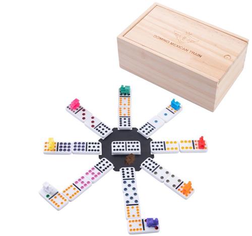 - Bij Bol.com kun je Domino dubbel 12 Mexican train in houten kist kopen voor de prijs van € 25,50. Dit is vandaag de goedkoopste webshop.