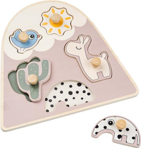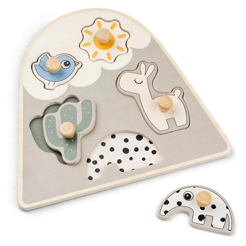 Deze prachtige inlegpuzzel is ideaal voor peuters en kleuters die van leuke en leerzame activiteiten houden. Geef je kind een geweldige speelervaring en help hen tegelijkertijd ontwikkelen met deze schattige Done By Deer houten inlegpuzzel Lalee Sand.