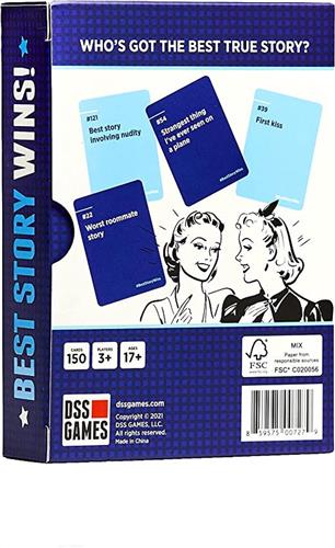 DSS Games Best Story Wins Card Game is een nieuw spel dat 150 promptkaarten bevat om je beste (en slechtste) verhalen van elke gelegenheid te delen. Daag je vrienden uit met verhalen over de vreemdste manier waarop je geld hebt verdiend, je beste ontmoeting met een beroemdheid en nog veel meer. Hoe sappiger het verhaal, hoe beter. De groep stemt vervolgens over welk verhaal het beste is.