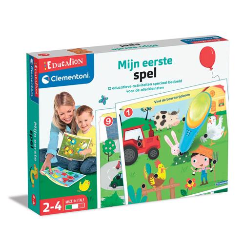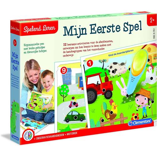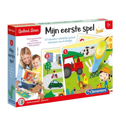 Clementoni Spelend Leren Mijn eerste spel biedt 12 leerzame activiteiten voor de allerkleinsten, ontworpen om hen kennis te laten maken met de basisbegrippen van het voorschoolse onderwijs. Met dit leuke spel leren kleine kinderen de basis van vormen, kleuren, ruimtelijk inzicht en afmetingen. Het spel bevat heel veel spelbladen en quizvragen. De elektronische pen geeft licht en maakt geluid bij het geven van een goed antwoord. Het spel stimuleert de ontwikkeling van het logisch denk-, observatie- en associatievermogen.