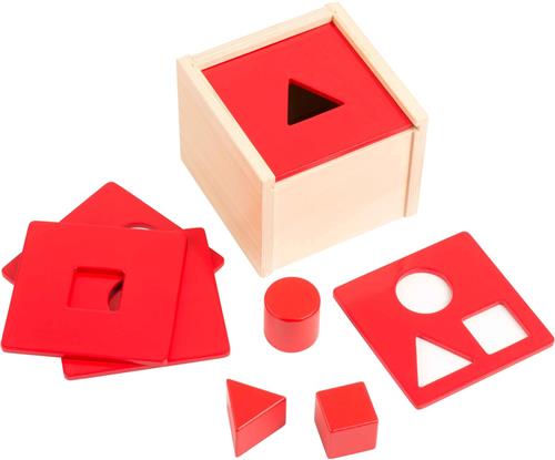 Daag kinderen uit om te experimenteren met wiskundige vormen en relaties met 'Plaats de vorm'. Iedere vorm past door een bijpassende opening. Dit stimuleert de oog-handcoördinatie en de fijne motoriek. Daarnaast werk je aan doorzettingsvermogen en concentratie. Het spel bevat verschillende deksels die oplopen in moeilijkheidsgraad. Inhoud: kist, 4 verschillende deksels, 3 vormen. Gemaakt van hout en geschikt voor kinderen vanaf 14 maanden.