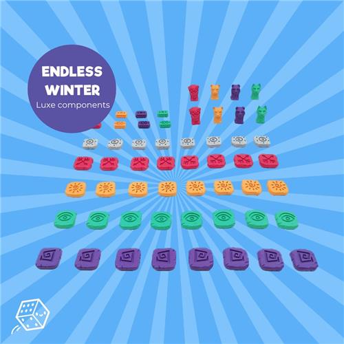 Ontdek de Endless Winter Luxe spelonderdelen, een premium aanvulling voor je strategische spelervaring. Deze deluxe componenten zijn speciaal ontworpen om de standaard onderdelen in het spel te vervangen, waardoor je een meer visueel aantrekkelijke en meeslepende spelervaring krijgt. Met 20 megalieten, 8 totemstenen en 4 scorestenen breng je het spel naar een geheel nieuw niveau.