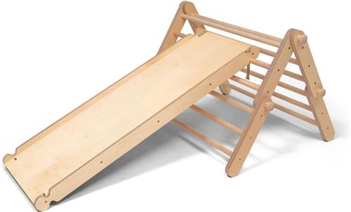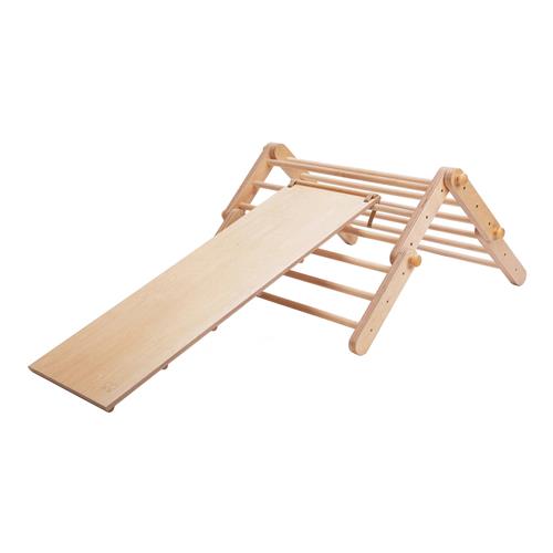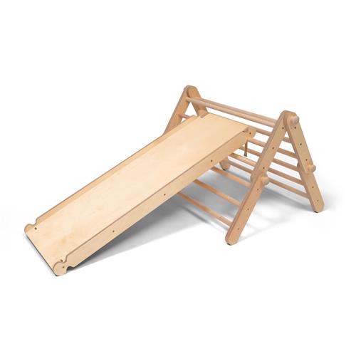 Het vermogen om te klimmen speelt een grote rol in de motoriek en het evenwicht van kinderen, daarom hebben ze van nature de neiging om overal te klimmen. Letterlijk - overal. Als ouder is het je rol om een je kind een veilige manier te bieden om de klimvaardigheden te verbeteren. Dit is precies wat het klimrek Mopitiri biedt! Verander de vorm van het klimrek elke dag - een lagere of steilere driehoek, in de vorm van een huis of helemaal plat. Of maak twee kleine driehoeken! Pas de klimuitdagingen aan aan de ontwikkelingsfase en vaardigheden van je kindje. Voeg de glijbaan toe voor nog meer plezier en speelopties!