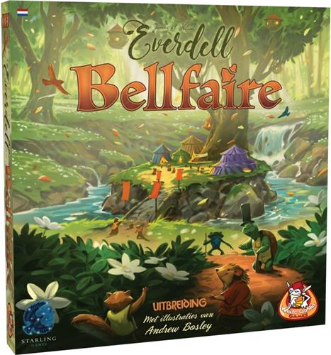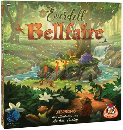 De boswezens van Everdell hebben de afgelopen 99 jaar hard gewerkt om de steden in hun geliefde vallei op te bouwen. Het is tijd om het te vieren! De koning en koningin organiseren een jaar lang fantastische festiviteiten om de 100ste verjaardag van Everdell te herdenken. Kom allemaal! Kom en vier de Bellfaire! Bellfaire bestaat uit verschillende modules en spelmateriaal die je kunt toevoegen als je Everdell speelt. Je kunt in plaats van de Ever Tree het Bellfaire speelbord gebruiken, nieuwe speciale gebeurtenissen toevoegen, Garland beloningen verdienen en gebruik maken van unieke krachtkaarten voor elk type boswezen.