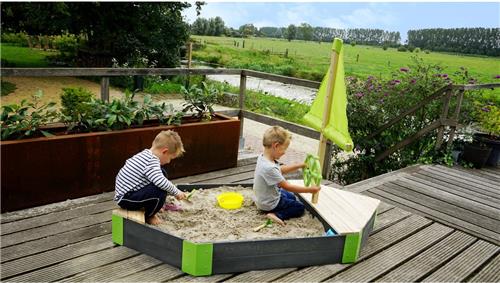 De houten zandbak is gemaakt van duurzaam, weerbestendig hout dat zowel stevig als veilig is voor kinderen om in te spelen. Met de handige afdekhoes kan de zandbak ook worden beschermd tegen regen, bladeren en dieren wanneer deze niet in gebruik is.