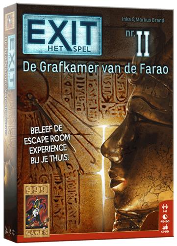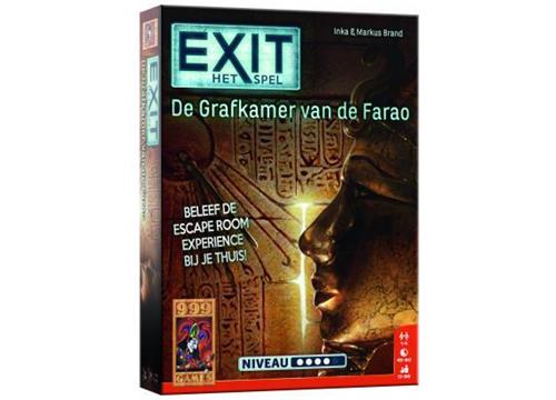 EXIT: De Grafkamer van de Farao is een uitdagend coöperatief escape room-spel waarbij je probeert te ontsnappen uit de griezelige grafkamer. Los alle puzzels op en kraak de codes binnen anderhalf uur om te ontsnappen uit de opgesloten locatie. Logisch denken en doorzettingsvermogen zijn vereist om dit spel succesvol af te ronden. Mocht je er echt niet uitkomen, dan bevatten de tipkaarten in het spel aanwijzingen om je weer op het goede spoor te brengen. Het spel is maar één keer speelbaar omdat sommig speelmateriaal beschreven, gevouwen of afgescheurd moet worden.