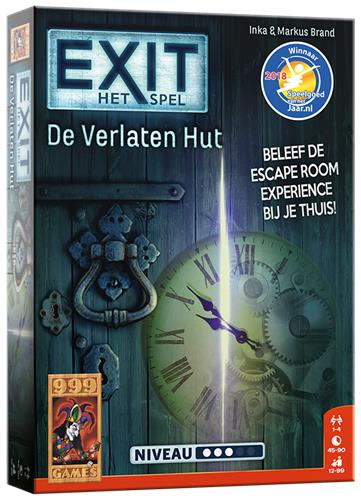 EXIT: De Verlaten Hut is maar één keer speelbaar omdat het speelmateriaal moet worden beschreven, gevouwen of afgescheurd. Maar net als in een "echte" escape room garanderen we een zeer intense puzzel- en speelervaring! De puzzels zijn vrij pittig. Daardoor is het spel vooral geschikt voor fervente puzzelaars en escape room-liefhebbers.
