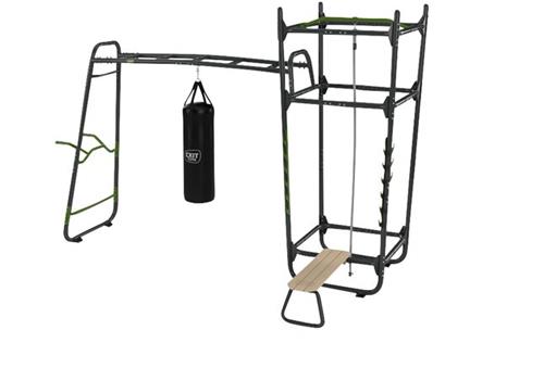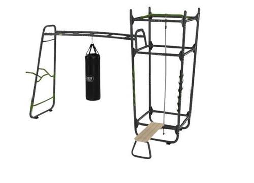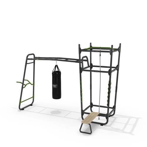Dit EXIT GetSet Powerstation PS510 - Outdoor Fitness - Speeltoestel is een geweldige toevoeging aan elke tuin voor sportieve tieners vanaf 14 jaar en volwassenen. Met een divers assortiment aan accessoires, waaronder een bokszak, klimtouw en fitnessbank, biedt dit fitnessrek eindeloos veel mogelijkheden voor een complete work-out in de buitenlucht.