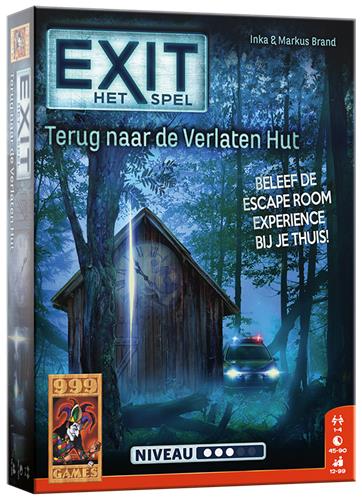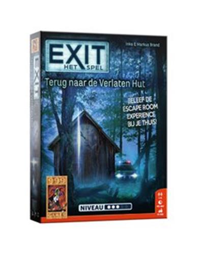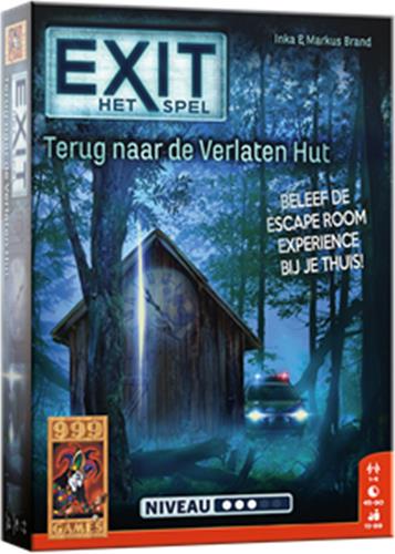 In dit deel van de Exit-serie keer je terug naar de plek waar het allemaal begonâ?¦ de verlaten hut! Terug naar de Verlaten Hut is een direct vervolg op de eerste Exit ooit. De schurk Dr. Arthur Funbeq is ontsnapt en alleen jij kunt zijn raadsels oplossen. Beleef nieuwe avonturen en ontsnap opnieuw uit de verlaten hut! Vanaf 12 jaar, geschikt voor 1 - 4 spelers met een speelduur van ca. 45 minuten.