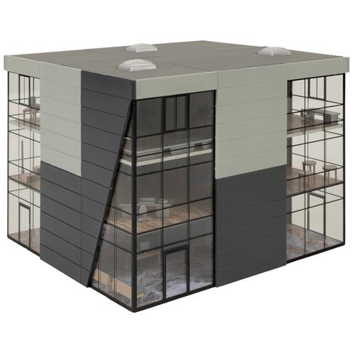 Het Faller 1/87 kantoorgebouw is een prachtige toevoeging aan elke modelspoorbaan. Met de schaal H0-1:87 is dit gebouw perfect om in een modern industriegebied, de haven of stad te plaatsen. De grote glazen gevels nodigen uit om gedetailleerd naar het interieur te kijken en verlichting zorgt voor een realistische uitstraling.