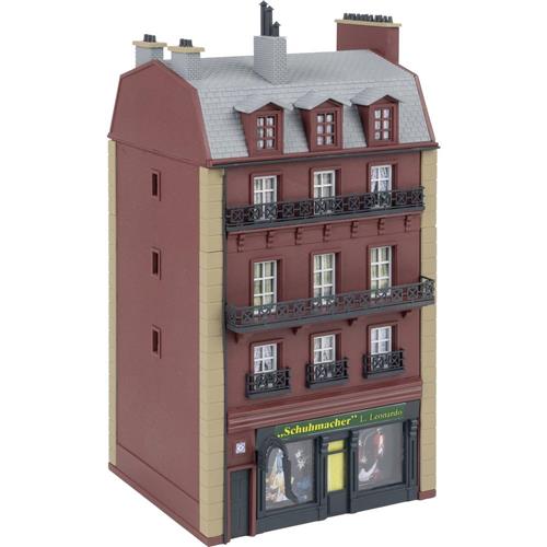 Op de begane grond van dit charmante stadshuis vind je een authentieke schoenmaker-winkel, wat bijdraagt aan de stedelijke flair die je zoekt voor je modelspoor. Met maar liefst 180 afzonderlijke onderdelen in vijf verschillende kleuren, biedt dit model eindeloze mogelijkheden voor creatief bouwen en personaliseren. Dit is niet alleen een toevoeging aan je verzameling, maar een op zichzelf staand kunstwerk.
