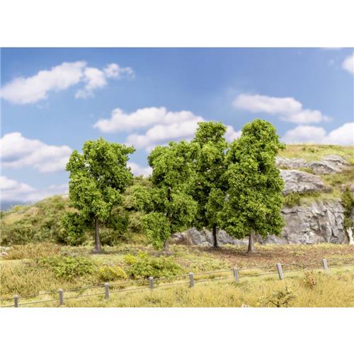 Faller 181575 Set bomen Loofboom is een set van 4 loofbomen die zorgen voor een natuurgetrouwe uitstraling op jouw modelspoorbaan. Met een hoogte tussen 90 en 110 mm passen deze bomen perfect bij schaal H0, waardoor je een realistisch landschap kunt creëren.